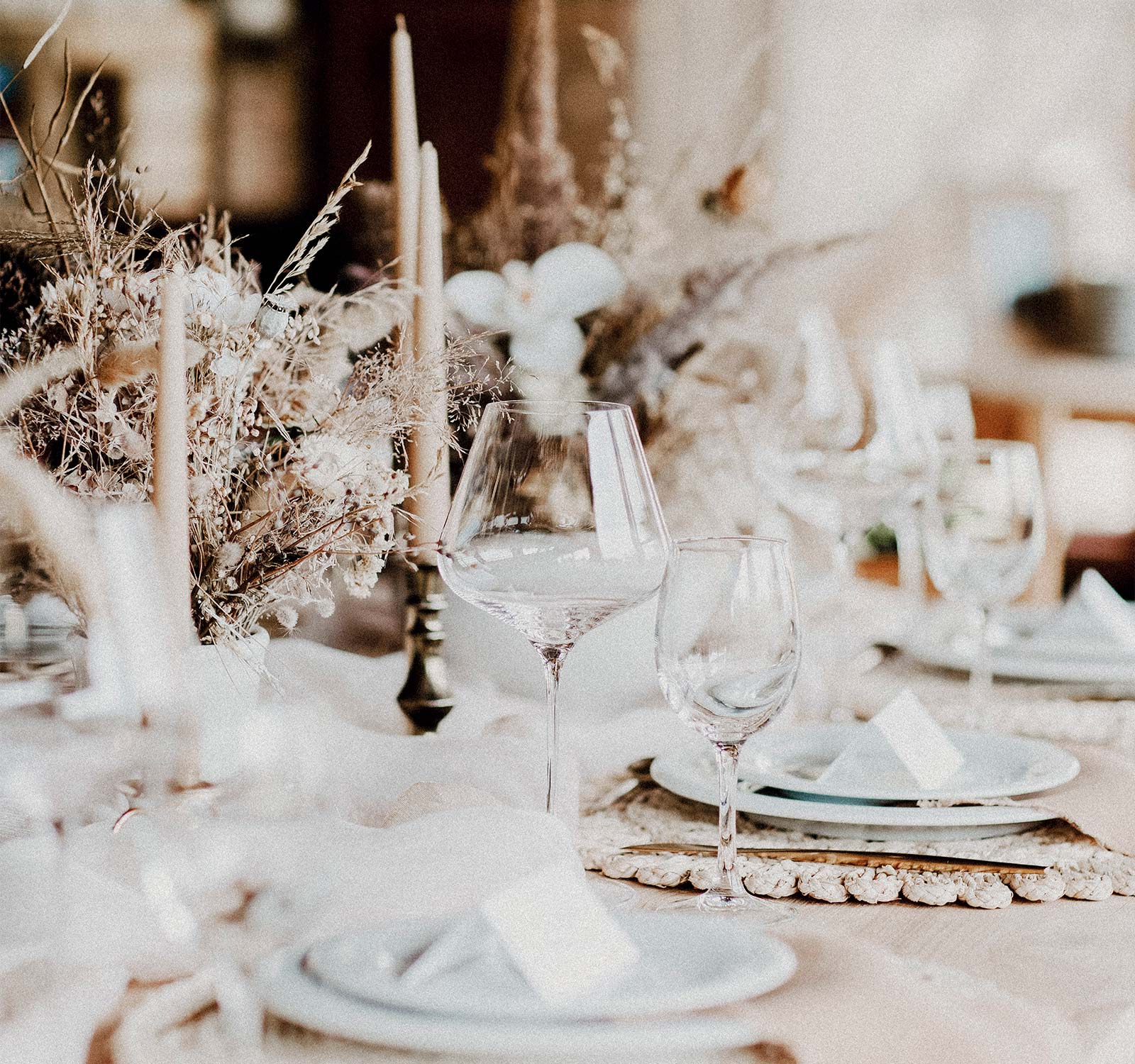 Ein festlich gedeckter Tisch trägt zum optischen Gesamterlebnis Eures großen Tages bei und wird für Stunden im Blickfeld Eurer Gäste sein.