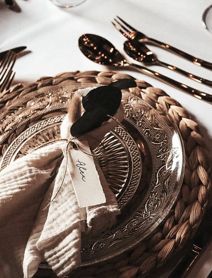 - Tischdekoration: Kerzenhalter, Kerzen, Serviettenstoffe, Platzsets, Platzteller, Tischläufer, Goldbestecke, Vasen, Tischklemme, individuelle Beschilderungen, Gastgeschenke, Namenskarten, Menükarten u.v.m.